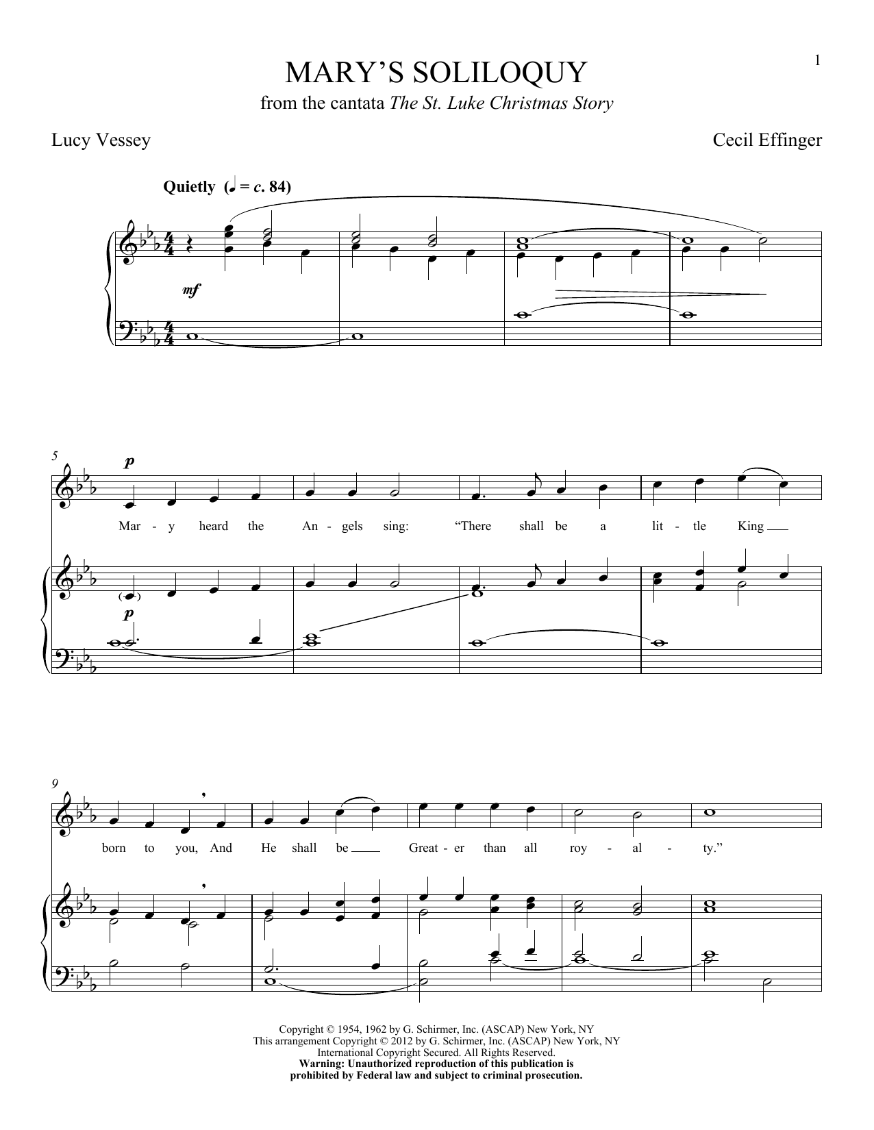 Download or print Cecil Effinger Mary's Soliloquy sheet music, chords and digital score arranged for Piano & Vocal. This Classical score includes 4 page(s).