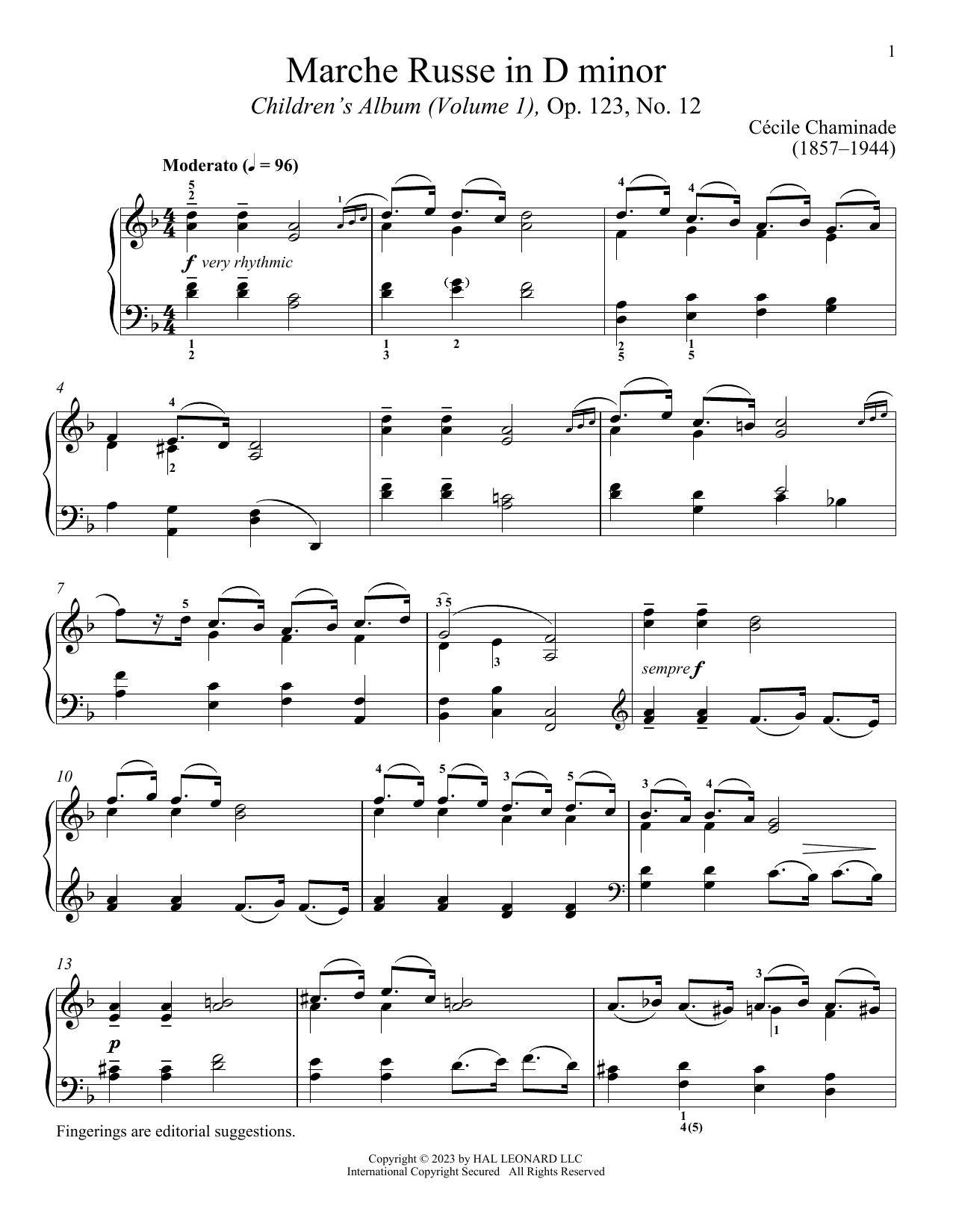 Download or print Cecile Chaminade Marche Russe sheet music, chords and digital score arranged for Piano Solo. This Classical score includes 2 page(s).
