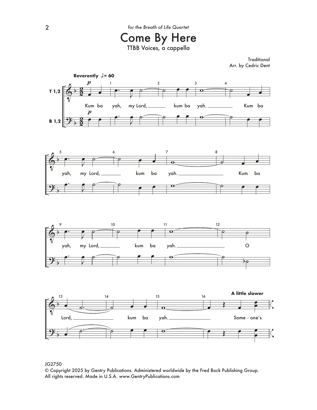Download or print Cedric Dent Come By Here sheet music, chords and digital score arranged for TTBB Choir. This Concert score includes 7 page(s).