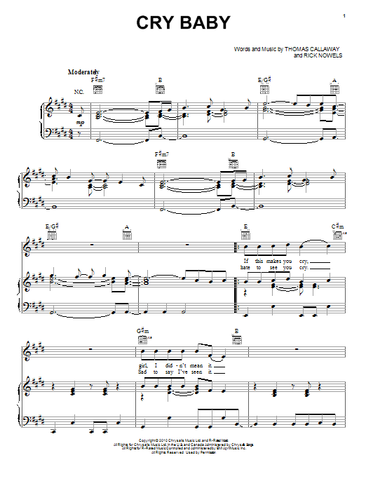 Download or print Cee Lo Green Cry Baby sheet music, chords and digital score arranged for Piano, Vocal & Guitar Chords. This Soul score includes 6 page(s).