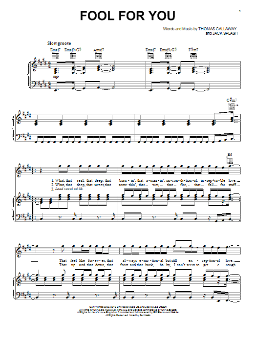 Download or print Cee Lo Green Fool For You sheet music, chords and digital score arranged for Piano, Vocal & Guitar Chords (Right-Hand Melody). This Pop score includes 3 page(s).