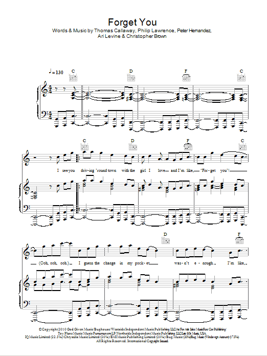 Download or print Cee Lo Green F*** You (Forget You) sheet music, chords and digital score arranged for Guitar Chords/Lyrics. This Pop score includes 3 page(s).