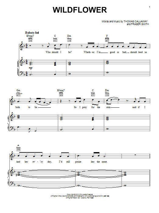 Download or print Cee Lo Green Wildflower sheet music, chords and digital score arranged for Piano, Vocal & Guitar Chords (Right-Hand Melody). This Pop score includes 6 page(s).