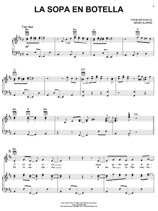 Download or print Celia Cruz La Sopa En Botella sheet music, chords and digital score arranged for Piano, Vocal & Guitar Chords (Right-Hand Melody). This Latin score includes 6 page(s).