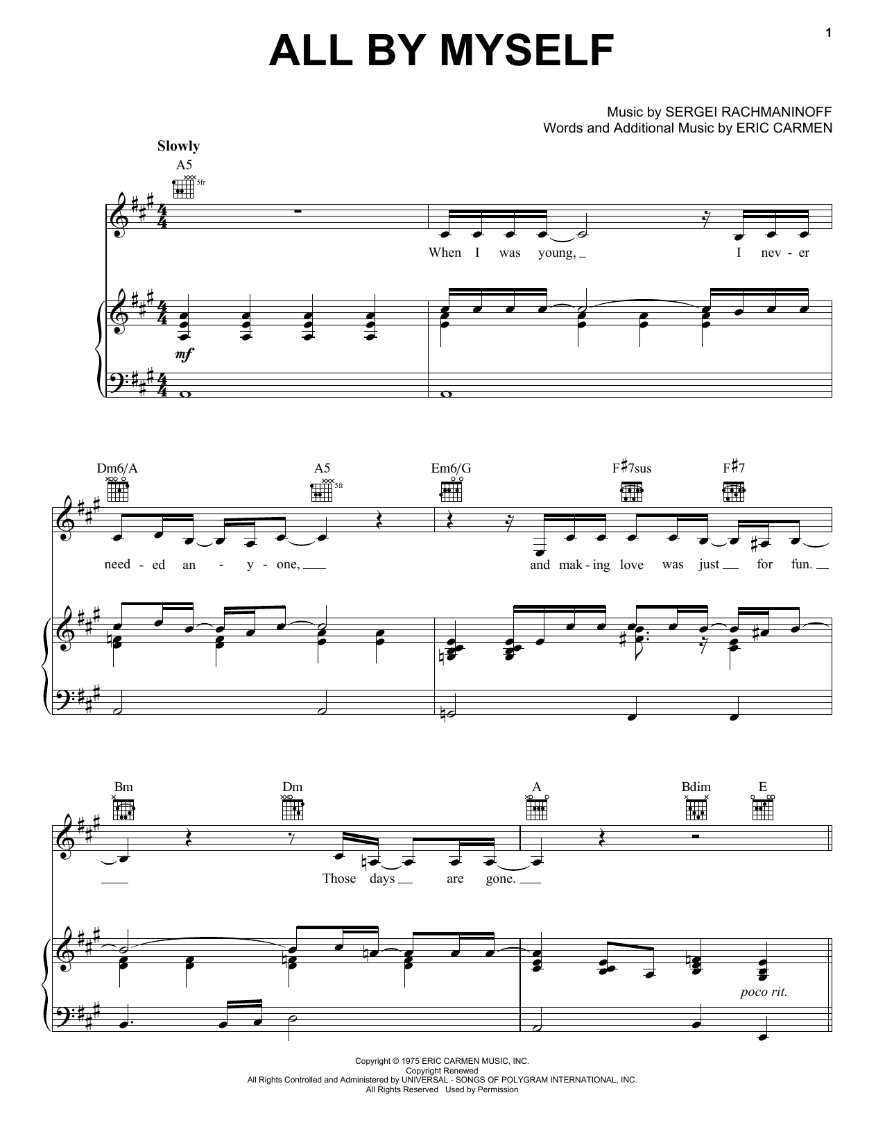 Download or print Celine Dion All By Myself sheet music, chords and digital score arranged for Piano Solo. This Pop score includes 4 page(s).