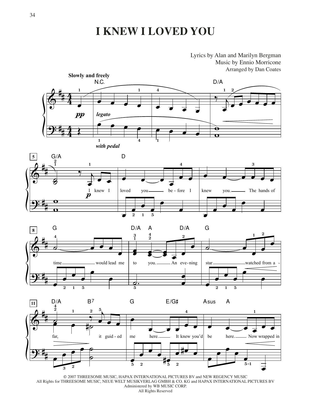 Quick facts I Knew I Loved You (L'Alba Del Mondo) about digital sheet music