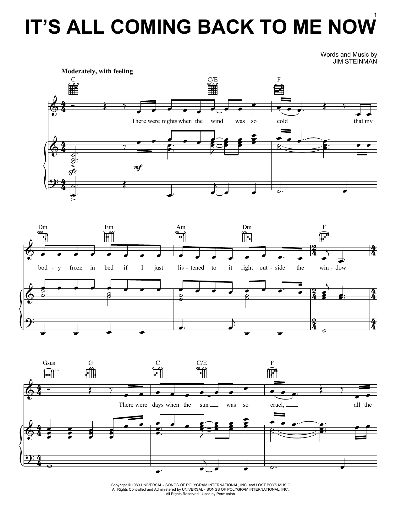Quick facts It's All Coming Back To Me Now about digital sheet music