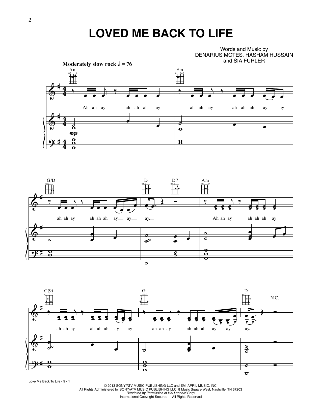 Download or print CÉLINE DION Loved Me Back To Life sheet music, chords and digital score arranged for Piano, Vocal & Guitar Chords (Right-Hand Melody). This Pop score includes 9 page(s).