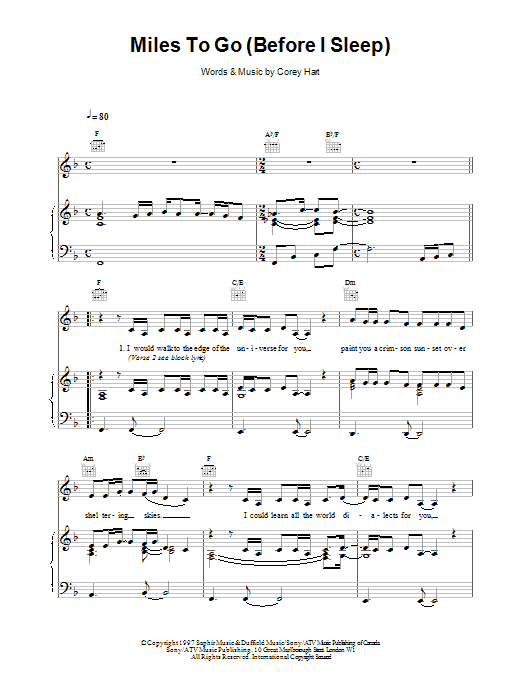 Download or print Celine Dion Miles To Go Before I Sleep sheet music, chords and digital score arranged for Piano, Vocal & Guitar Chords. This Pop score includes 4 page(s).