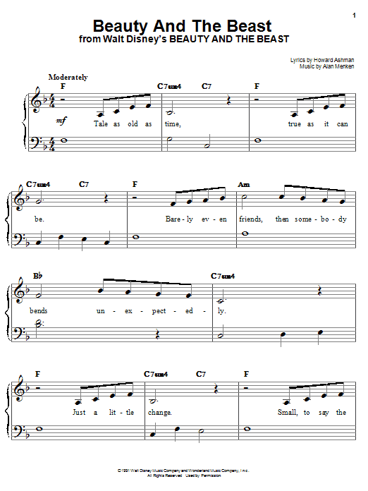 Download or print Celine Dion & Peabo Bryson Beauty And The Beast sheet music, chords and digital score arranged for Piano & Vocal. This Children score includes 4 page(s).