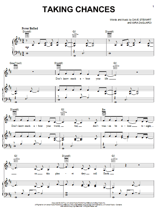 Download or print Celine Dion Taking Chances sheet music, chords and digital score arranged for Easy Piano. This Pop score includes 7 page(s).