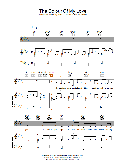 Download or print Celine Dion The Colour Of My Love sheet music, chords and digital score arranged for Piano, Vocal & Guitar Chords (Right-Hand Melody). This Love score includes 5 page(s).