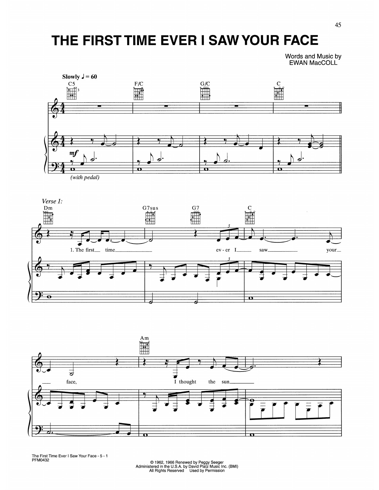 Quick facts The First Time Ever I Saw Your Face about digital sheet music