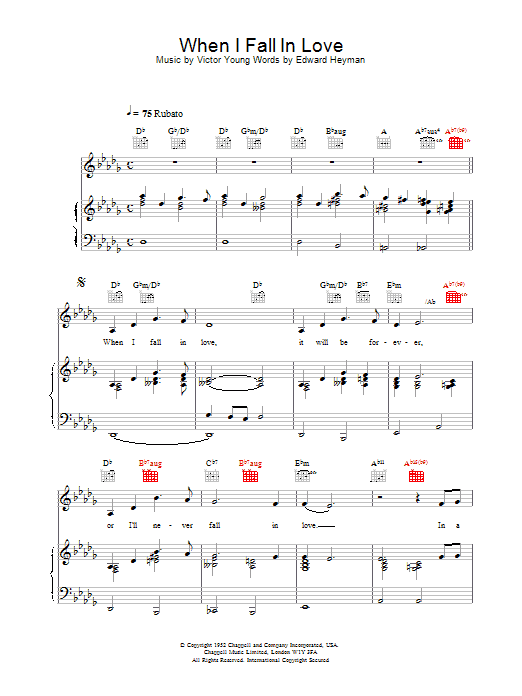 Quick facts When I Fall In Love about digital sheet music