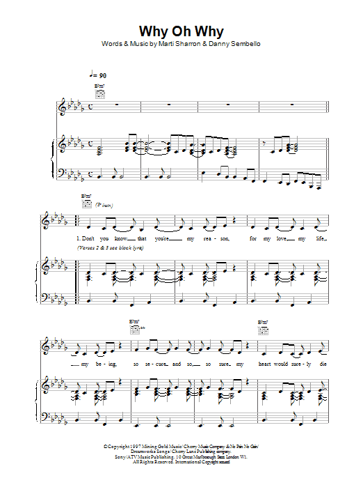 Download or print Celine Dion Why Oh Why sheet music, chords and digital score arranged for Piano, Vocal & Guitar Chords. This Pop score includes 4 page(s).