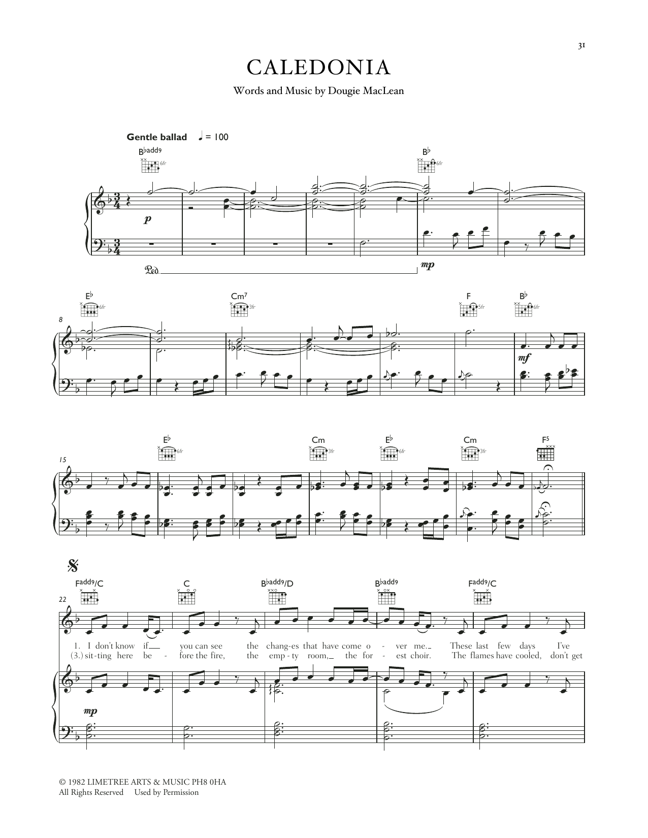Download or print Celtic Woman Caledonia sheet music, chords and digital score arranged for Piano, Vocal & Guitar Chords (Right-Hand Melody). This Celtic score includes 7 page(s).