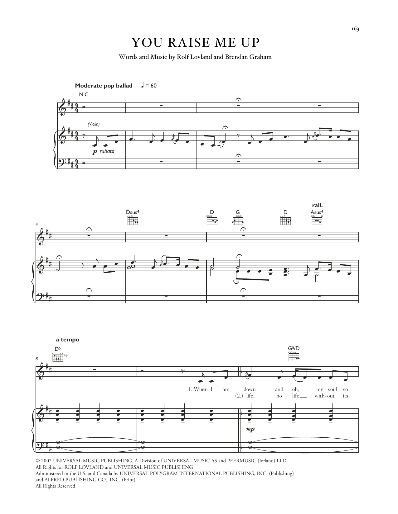 Download or print Celtic Woman You Raise Me Up sheet music, chords and digital score arranged for Piano, Vocal & Guitar Chords (Right-Hand Melody). This Celtic score includes 5 page(s).