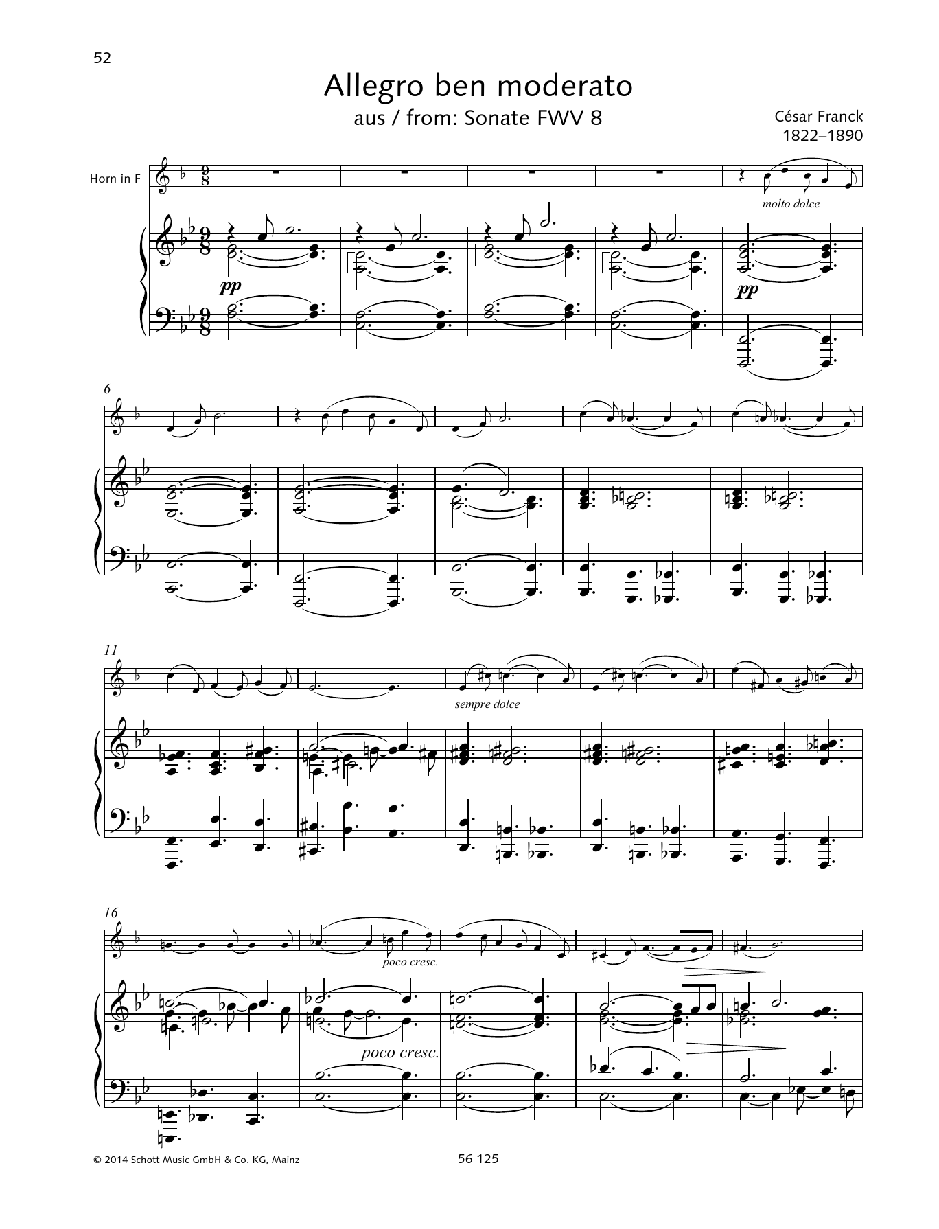 Download or print Cesar Franck Allegro ben moderato sheet music, chords and digital score arranged for Brass Solo. This Classical score includes 9 page(s).