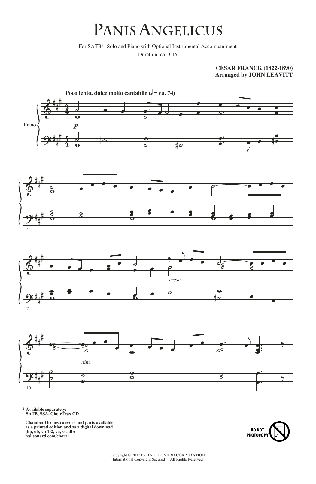 Download or print Cesar Franck Panis Angelicus (arr. John Leavitt) sheet music, chords and digital score arranged for SSA Choir. This Sacred score includes 8 page(s).