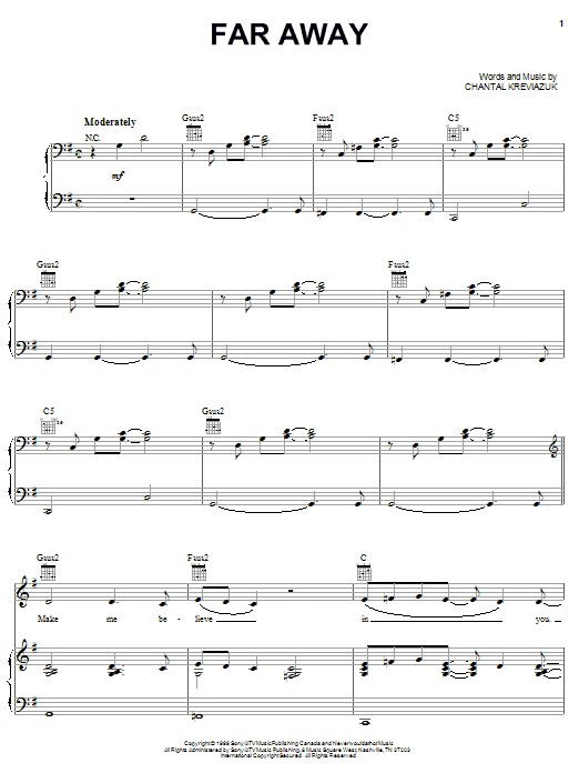 Download or print Chantal Kreviazuk Far Away sheet music, chords and digital score arranged for Piano, Vocal & Guitar Chords (Right-Hand Melody). This Pop score includes 9 page(s).