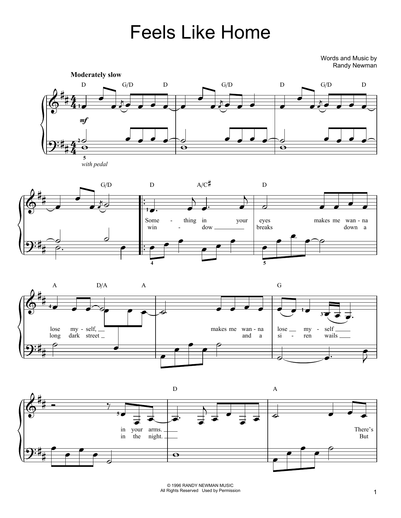 Download or print Chantal Kreviazuk Feels Like Home sheet music, chords and digital score arranged for Easy Piano. This Pop score includes 5 page(s).