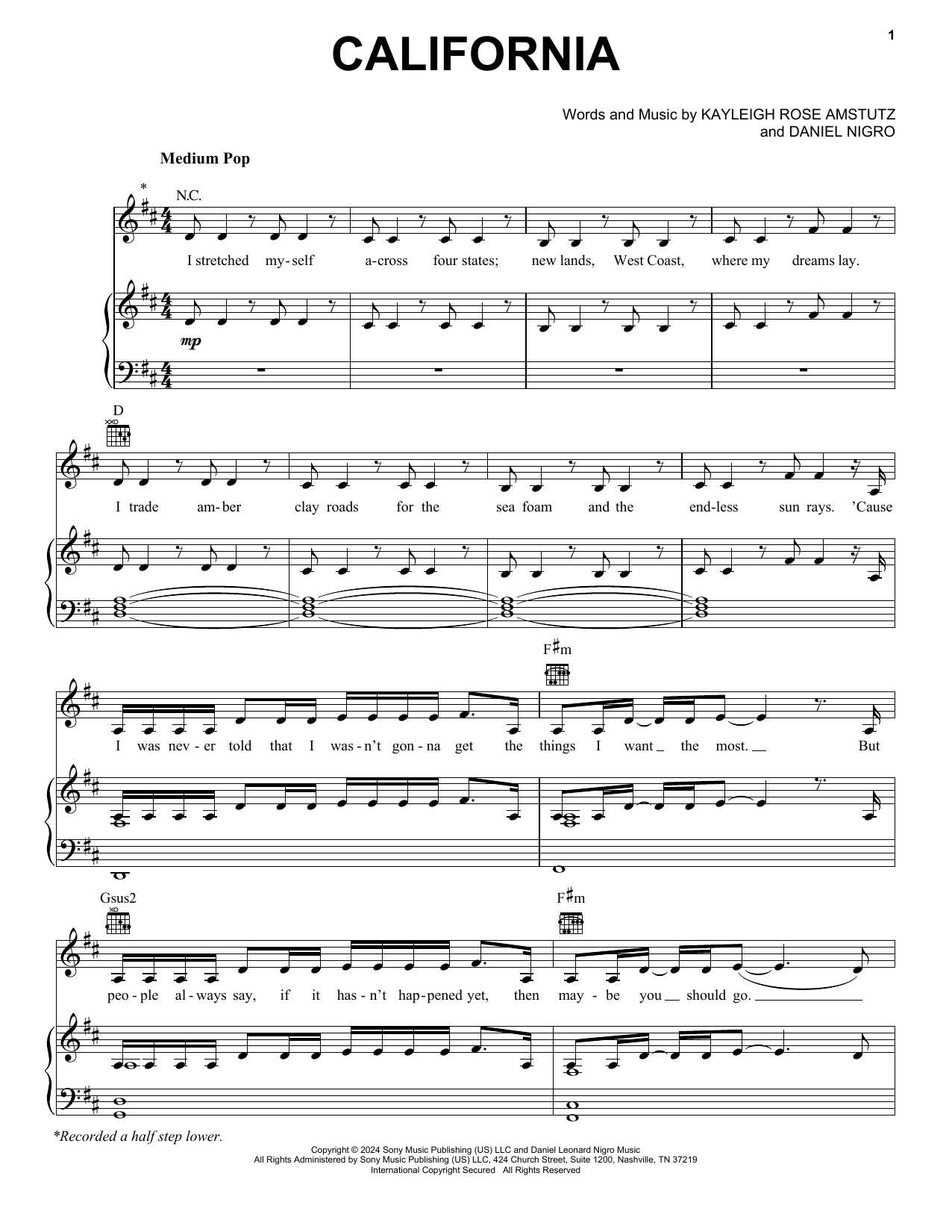 Download or print Chappell Roan California sheet music, chords and digital score arranged for Easy Piano. This Pop score includes 6 page(s).