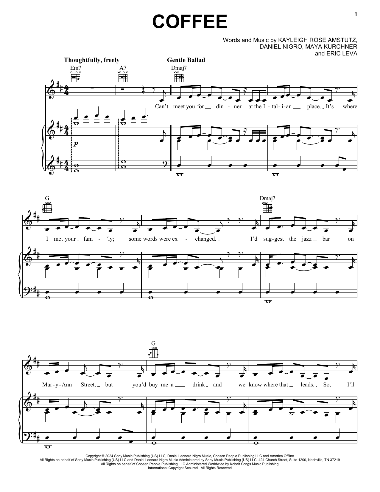 Download or print Chappell Roan Coffee sheet music, chords and digital score arranged for Easy Piano. This Pop score includes 5 page(s).