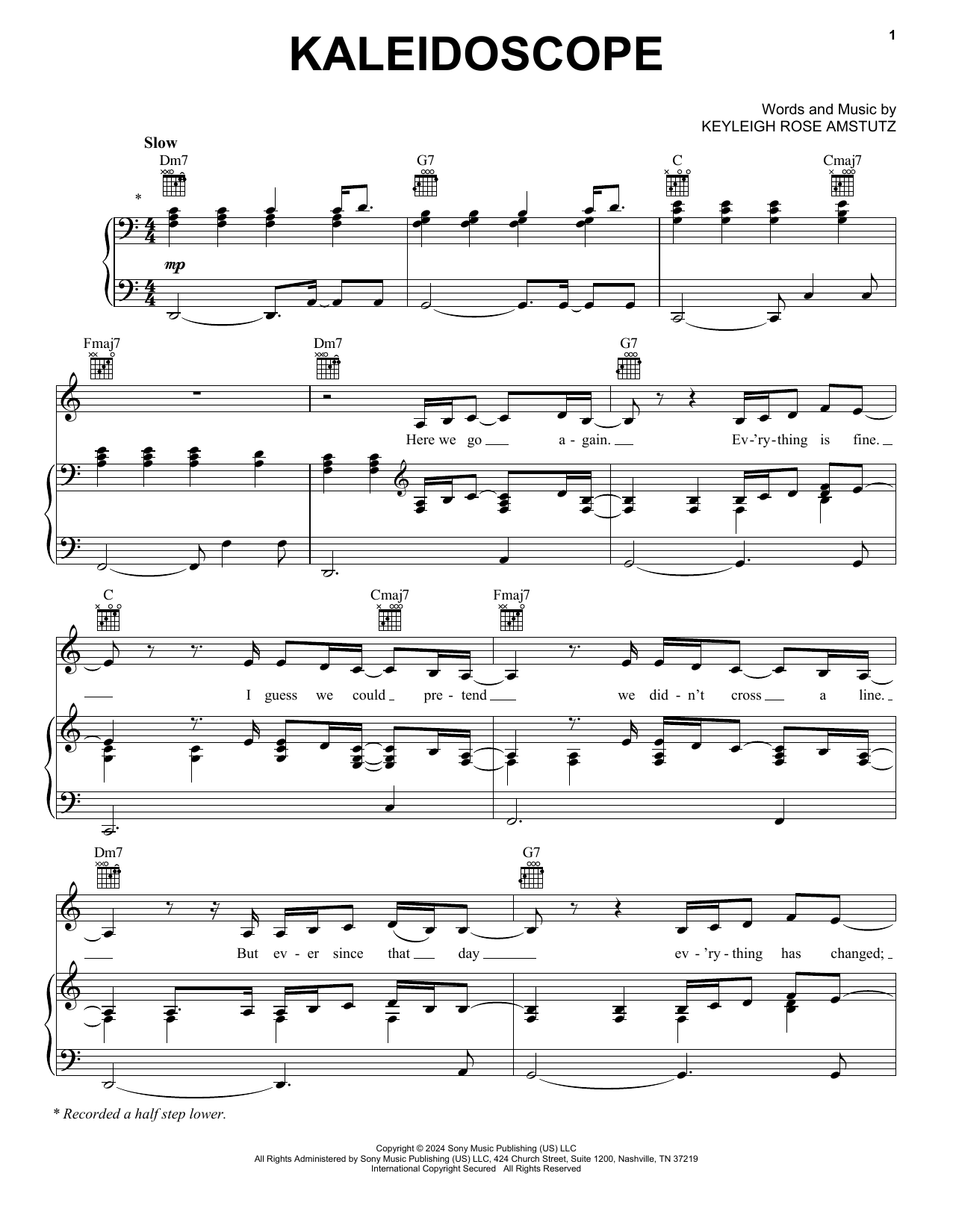 Download or print Chappell Roan Kaleidoscope sheet music, chords and digital score arranged for Easy Piano. This Pop score includes 5 page(s).