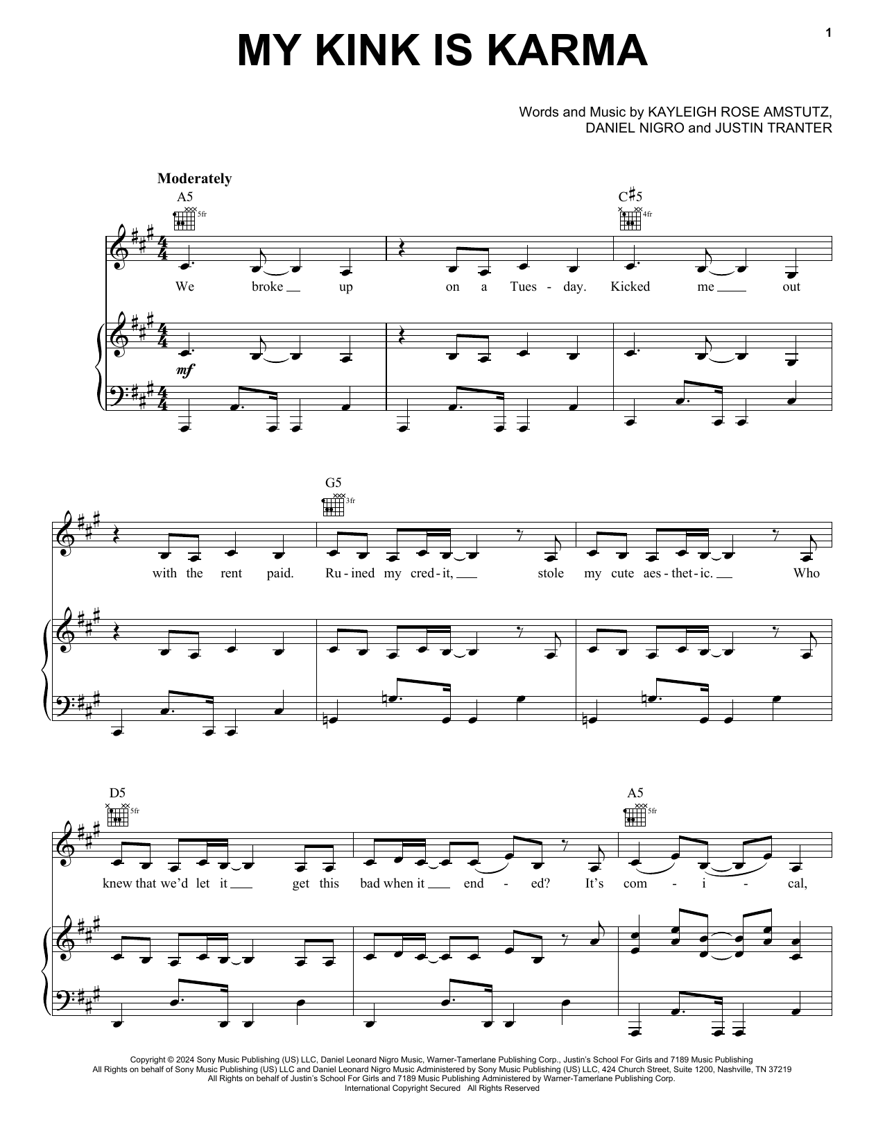 Download or print Chappell Roan My Kink Is Karma sheet music, chords and digital score arranged for Easy Piano. This Pop score includes 6 page(s).