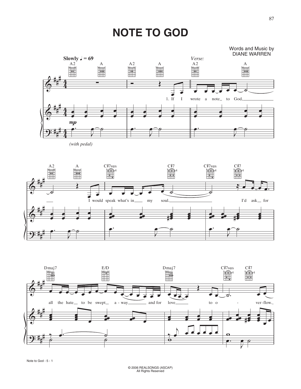 Download or print Charice Note To God sheet music, chords and digital score arranged for Piano, Vocal & Guitar Chords (Right-Hand Melody). This Pop score includes 5 page(s).