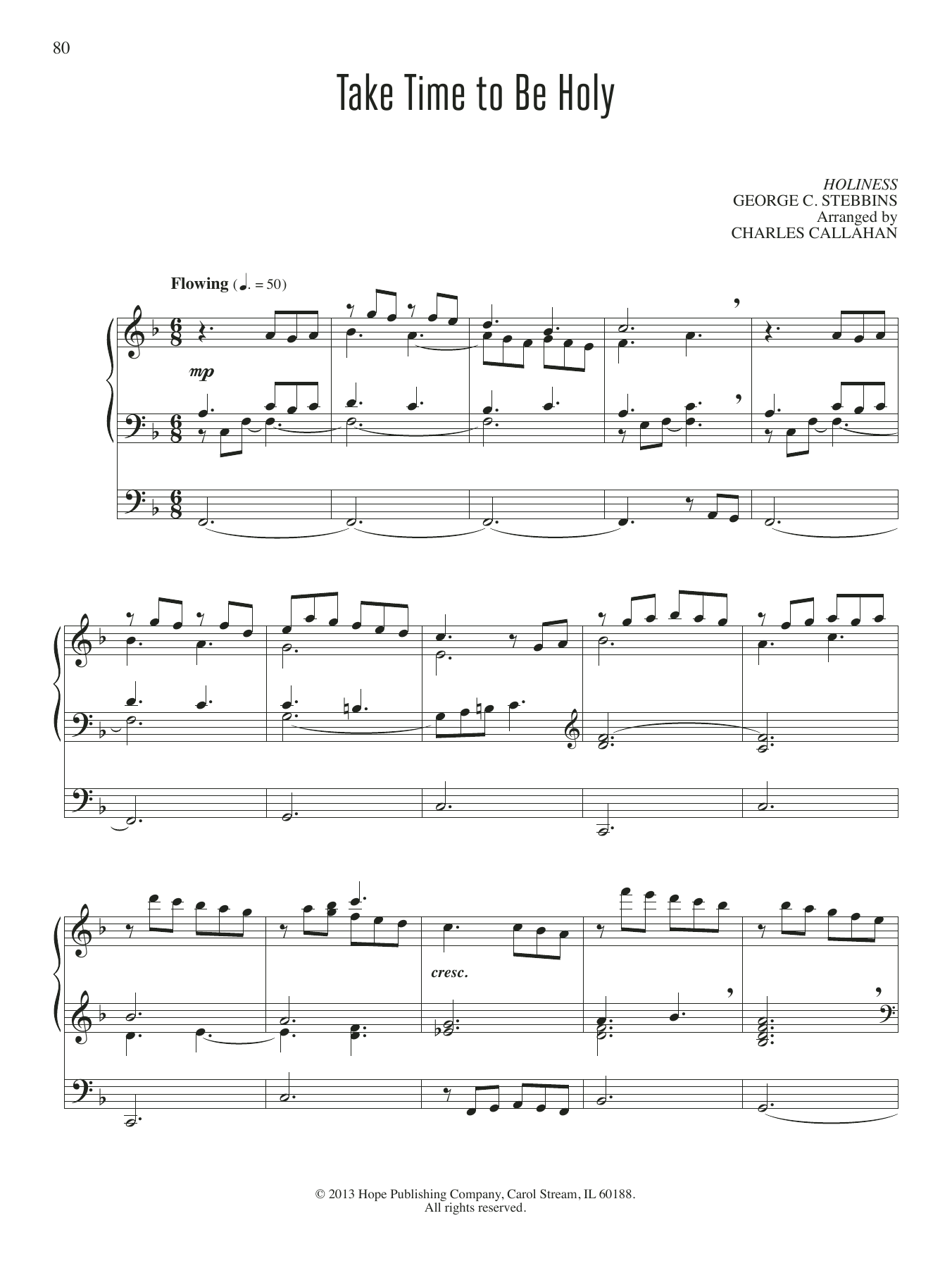 Download or print Charles Callahan Take Time To Be Holy sheet music, chords and digital score arranged for Organ. This Hymn score includes 3 page(s).