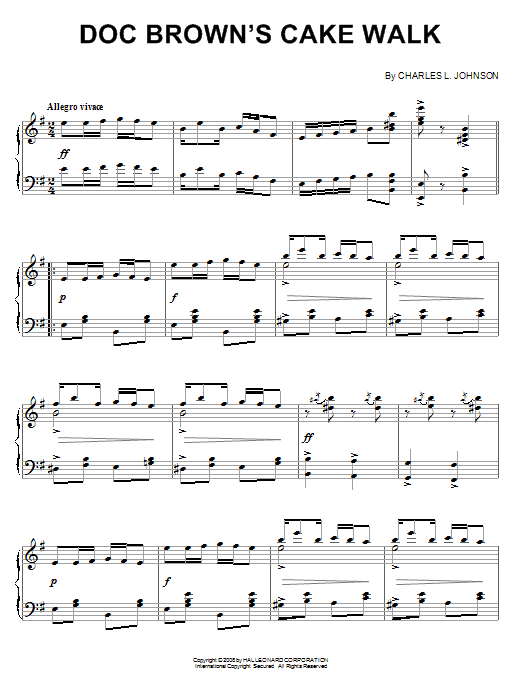 Download or print Charles L. Johnson Doc Brown's Cake Walk sheet music, chords and digital score arranged for Piano Solo. This Jazz score includes 5 page(s).