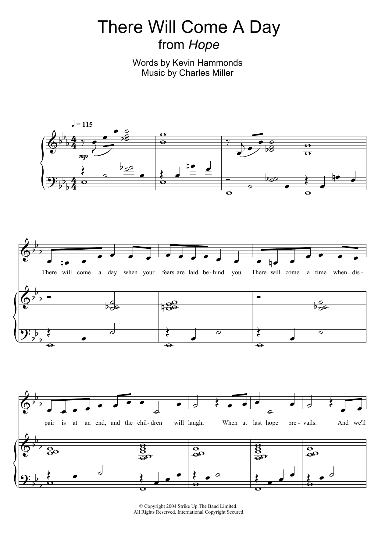 Download or print Kevin Hammonds There Will Come A Day (From 'Hope') sheet music, chords and digital score arranged for Piano & Vocal. This Musical/Show score includes 7 page(s).