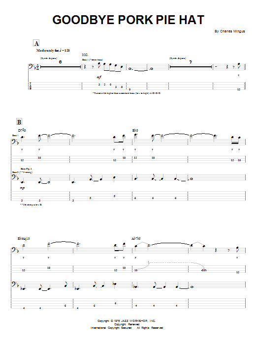 Download or print Charles Mingus Goodbye Pork Pie Hat sheet music, chords and digital score arranged for Piano Solo. This Jazz score includes 3 page(s).