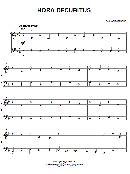 Download or print Charles Mingus Hora Decubitus sheet music, chords and digital score arranged for Easy Piano. This Jazz score includes 3 page(s).