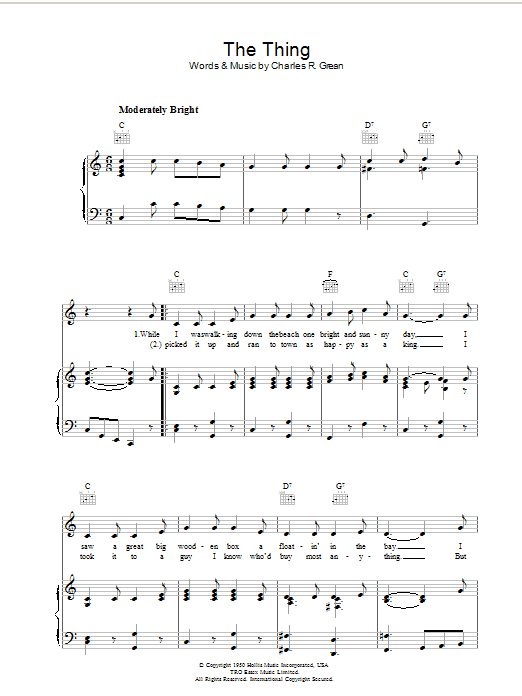 Download or print Charles R. Grean The Thing sheet music, chords and digital score arranged for Easy Piano. This Children score includes 2 page(s).