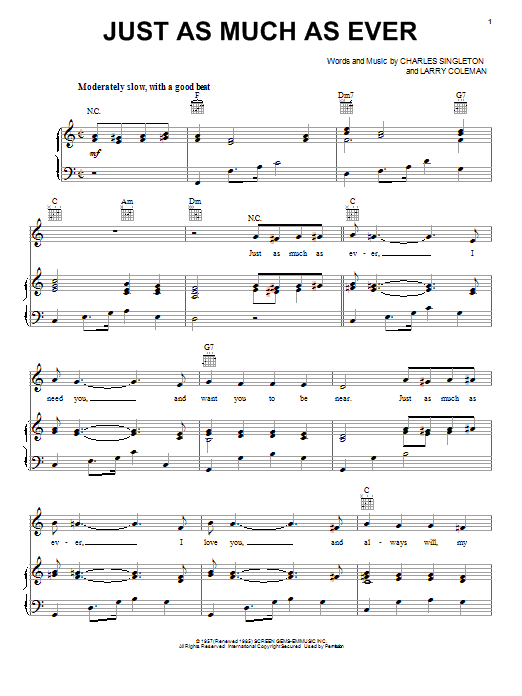 Download or print Charles Singleton Just As Much As Ever sheet music, chords and digital score arranged for Piano, Vocal & Guitar Chords (Right-Hand Melody). This Pop score includes 3 page(s).