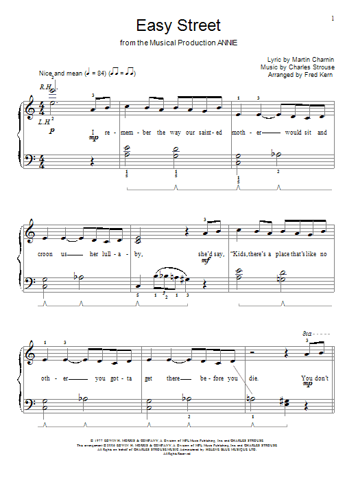 Download or print Charles Strouse Easy Street sheet music, chords and digital score arranged for Piano & Vocal. This Musical/Show score includes 7 page(s).