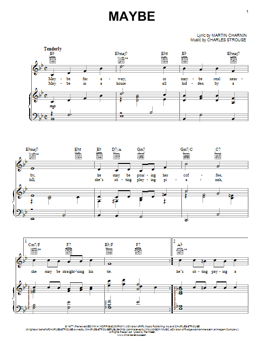 Download or print Charles Strouse Maybe sheet music, chords and digital score arranged for Easy Piano. This Children score includes 3 page(s).