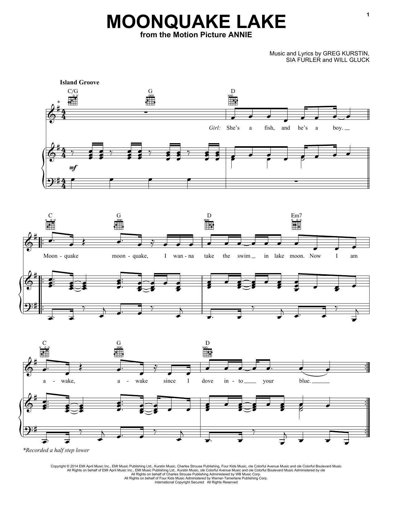Download or print Charles Strouse Moonquake Lake sheet music, chords and digital score arranged for Piano, Vocal & Guitar Chords (Right-Hand Melody). This Musical/Show score includes 7 page(s).
