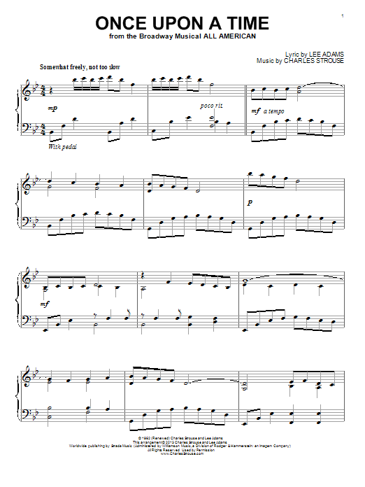 Download or print Lee Adams Once Upon A Time sheet music, chords and digital score arranged for Piano Solo. This Jazz score includes 6 page(s).