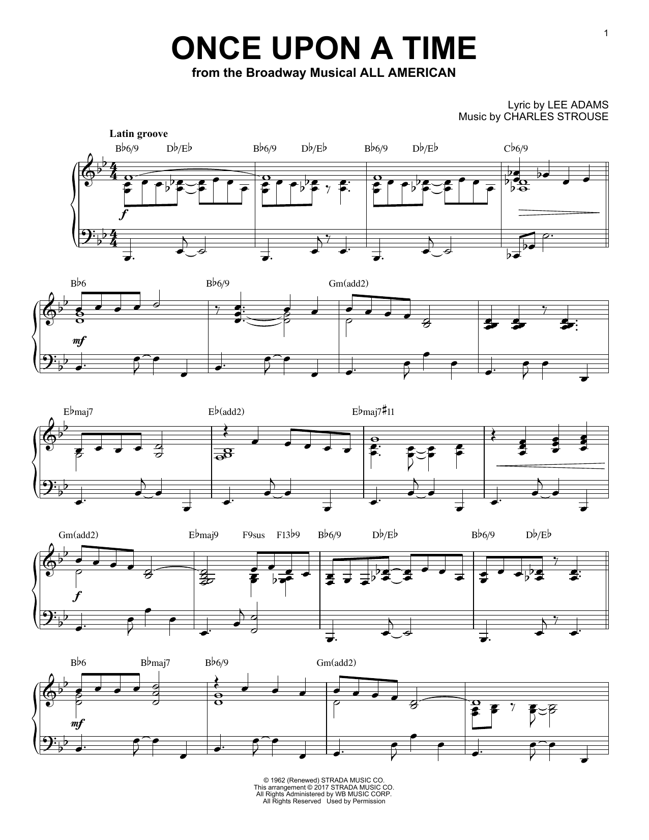 Download or print Charles Strouse Once Upon A Time [Jazz version] sheet music, chords and digital score arranged for Piano Solo. This Jazz score includes 4 page(s).