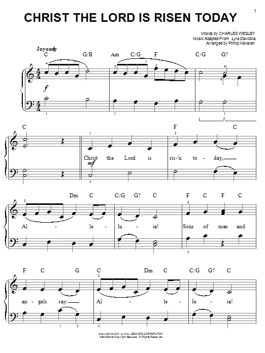 Download or print Charles Wesley Christ The Lord Is Risen Today (arr. Phillip Keveren) sheet music, chords and digital score arranged for Easy Piano. This Christian score includes 3 page(s).
