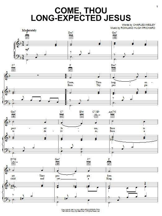 Download or print Charles Wesley Come, Thou Long-Expected Jesus sheet music, chords and digital score arranged for Piano Solo. This Christian score includes 2 page(s).