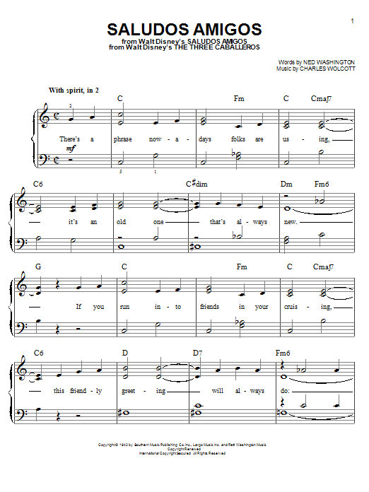Download or print Charles Wolcott Saludos Amigos sheet music, chords and digital score arranged for French Horn Solo. This Children score includes 1 page(s).