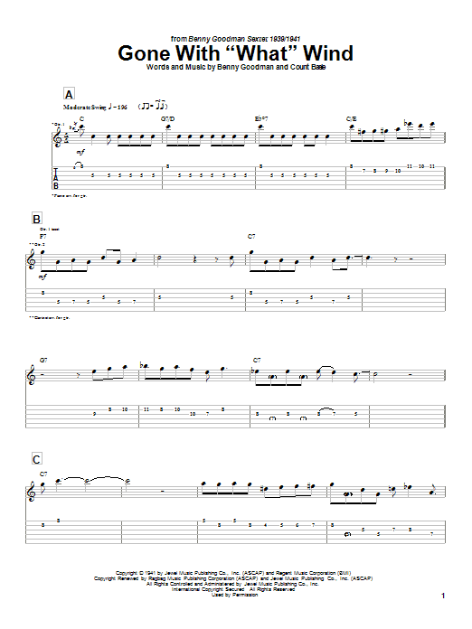Download or print Charlie Christian Gone With "What" Wind sheet music, chords and digital score arranged for Guitar Tab. This Jazz score includes 10 page(s).