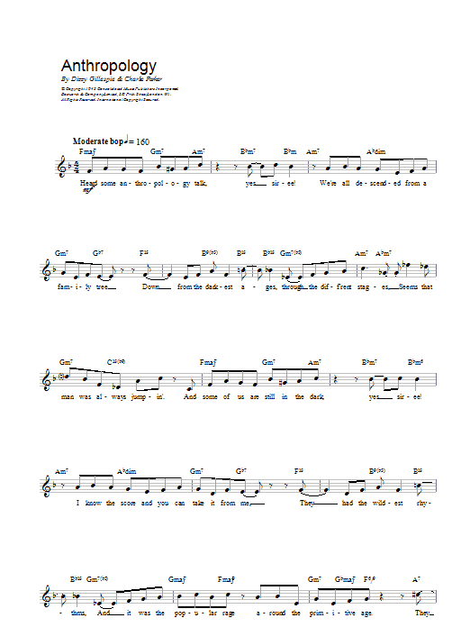 Download or print Charlie Parker Anthropology sheet music, chords and digital score arranged for Alto Sax Transcription. This Jazz score includes 4 page(s).