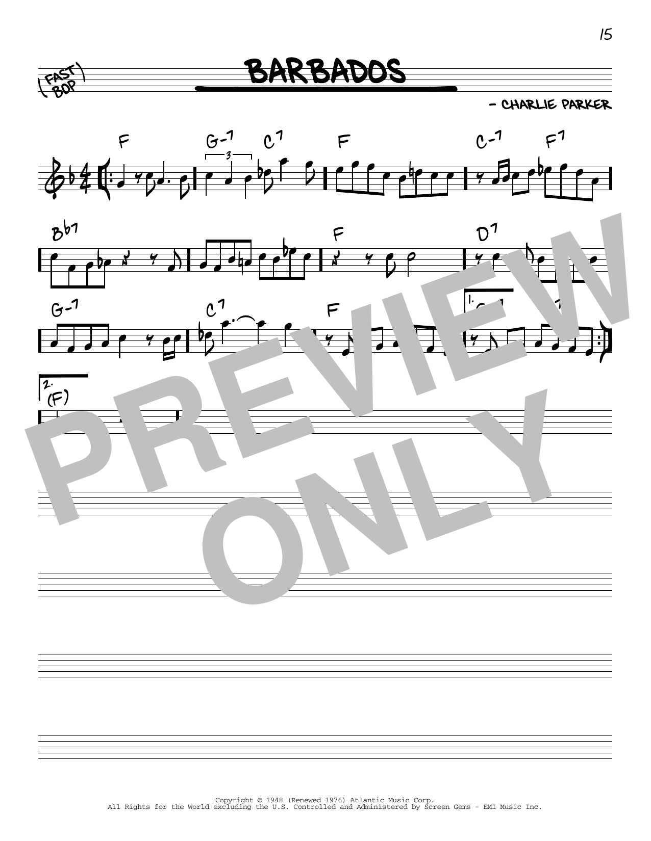 Download or print Charlie Parker Barbados sheet music, chords and digital score arranged for Transcribed Score. This Jazz score includes 9 page(s).