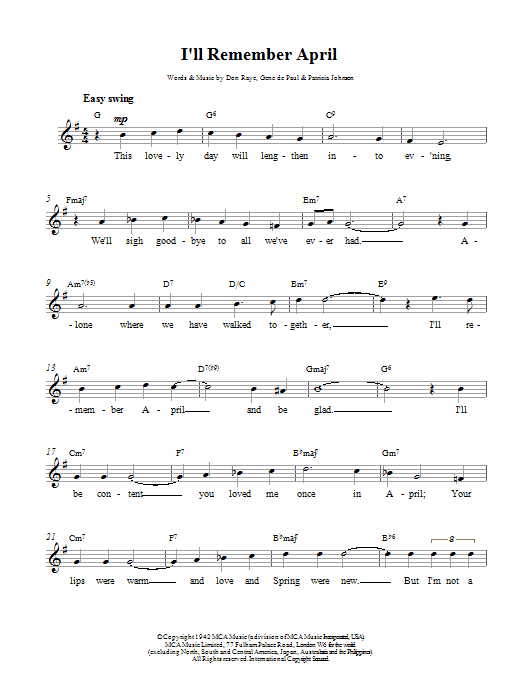 Download or print Charlie Parker I'll Remember April sheet music, chords and digital score arranged for Alto Sax Transcription. This Jazz score includes 3 page(s).