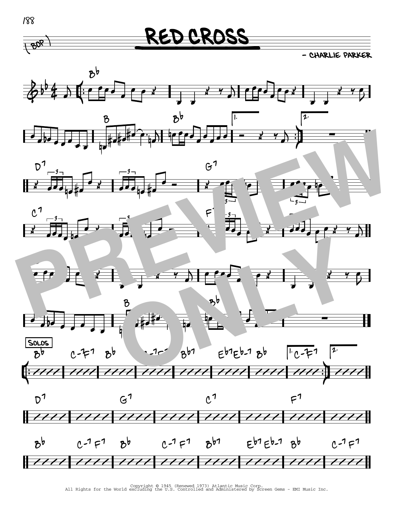 Download or print Charlie Parker Red Cross sheet music, chords and digital score arranged for Real Book – Melody & Chords – Eb Instruments. This Jazz score includes 1 page(s).